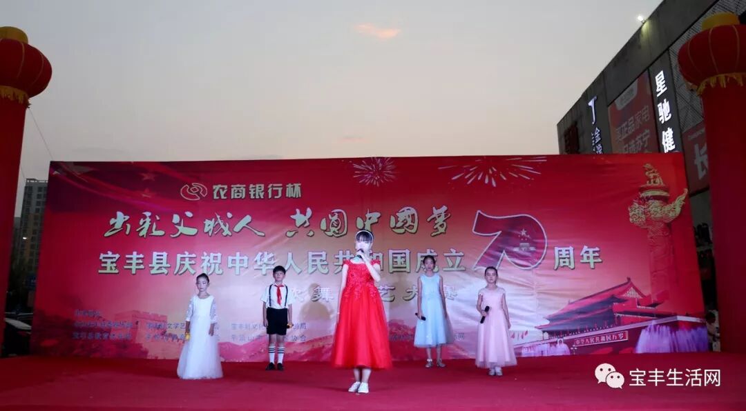 出彩父城人,共圆中国梦!8月14日晚,“农商银行杯”宝丰县庆祝中华人民共和国成立70周年歌舞才艺大赛启动仪式暨城区赛区首场比赛在大驰·欣悦城广场举行。宝丰县人大常委会副主任、县文联主席阿卫国,宝丰县文联党组书记、副主席张小磊,宝丰县文化广电和旅游局党组副书记、副局长马延辉,宝丰县教育体育局党委委员、县体育发展中心主任魏延军等领导及宝丰农商银行行长陈新建出席启动仪式。