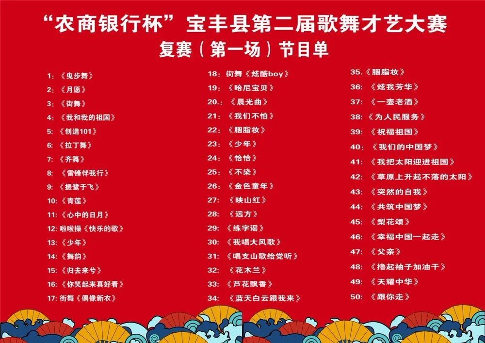 由中共宝丰县委宣传部、宝丰县文学艺术界联合会、宝丰县教育体育局、平顶山市音乐家协会、平顶山市舞蹈家协会、联合举办的“出彩父城 圆梦小康”宝丰县第二届歌舞才艺大赛活动,“农商银行杯”宝丰县第二届歌舞才艺大赛复赛第一场11月7日上午9:00开始比赛!