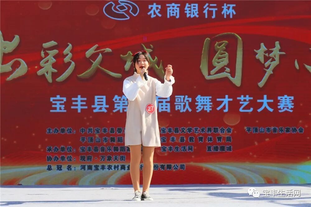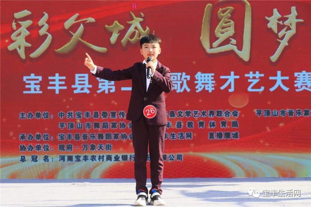 据介绍,本次大赛由中共宝丰县委宣传部、宝丰县文学艺术界联合会、宝丰县教育体育局、平顶山市音乐家协会、平顶山市舞蹈家协会主办,宝丰县音乐舞蹈家协会、宝丰生活网、直播鹰城承办,宝丰农商银行总冠名,观府·万象天街协办。本次大赛共设预赛、复赛、总决赛和颁奖晚会,共8场,覆盖全县城乡。活动全部比赛和颁奖晚会由宝丰生活网、直播鹰城现场直播。